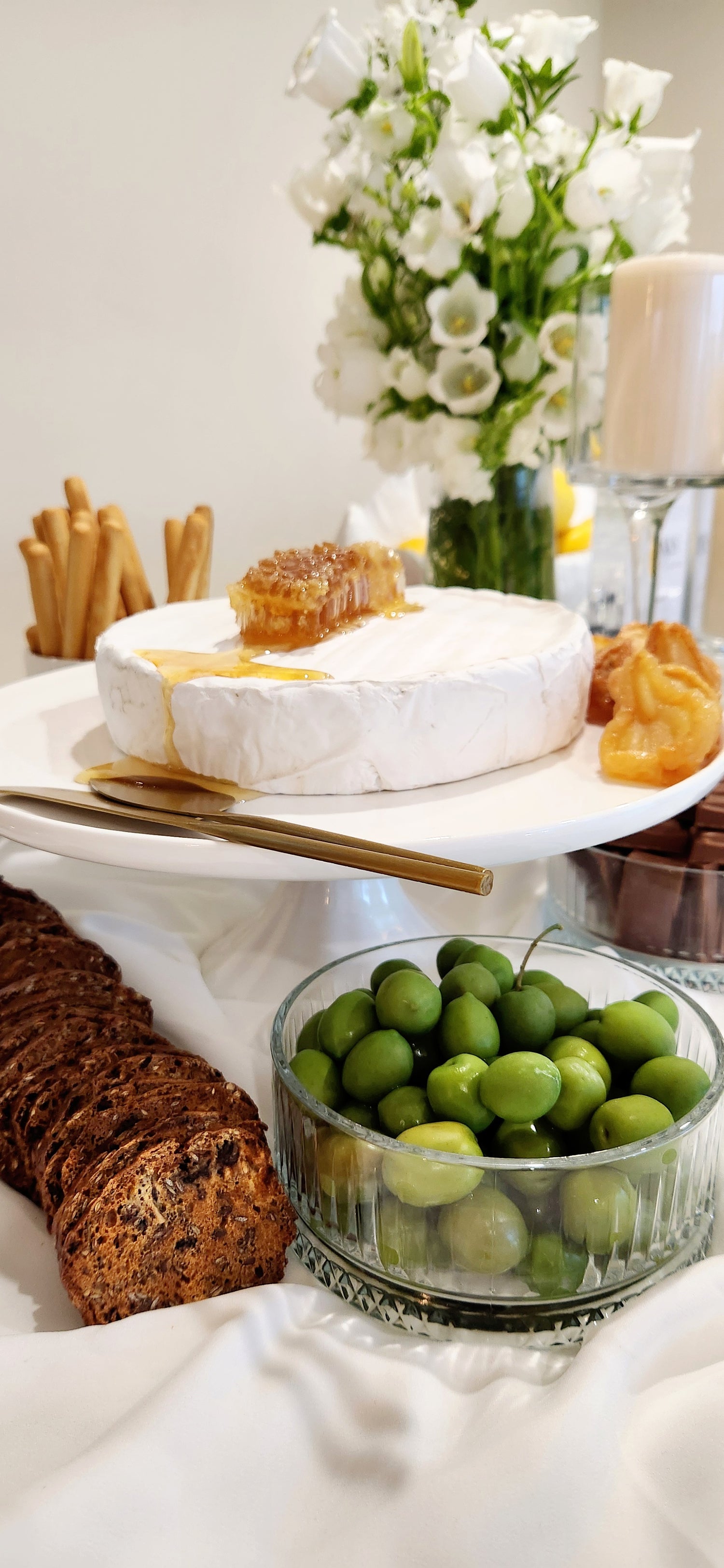 + Olive loaf | Sourdough loaf | Crackers | Dried & Fresh Fruit | Nuts | Chocolate | Brownie Bites